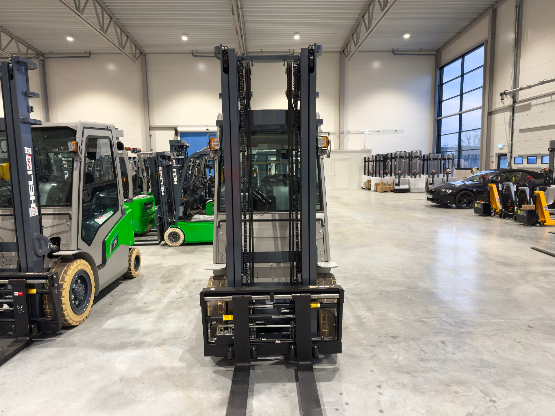 Kraftfull 2,5 tons motviktstruck med uppvärmd hytt som standard. Specifikation och prestanda lämpar sig för krävande användning.